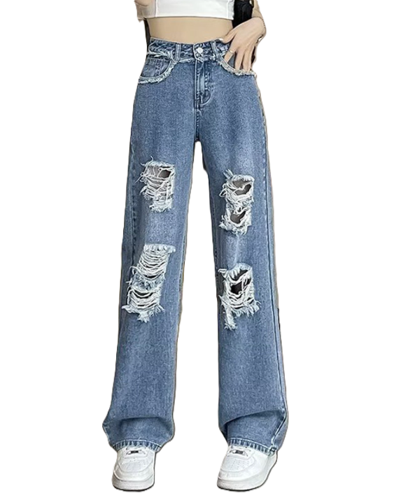 [2사이즈] 빈티지찢청바지 여성청바지 여자청바지 찢어진청바지 세미와이드청바지 여성찢청 여자찢청 패션청바지 하이웨스트 데일리 캐주얼 봄 여름 가을 패션바지 양쪽찢어진청바지 데님