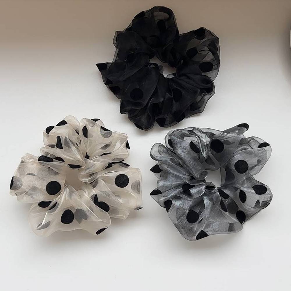 국산 도트 땡땡이 시스루 왕 헤어 곱창 밴드 스크런치 머리끈 슈슈
