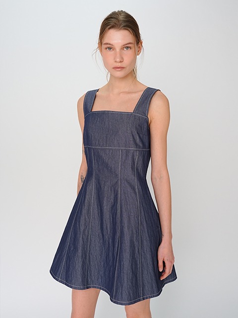 SLEEVELESS STITCH MINI DRESS / BLUE