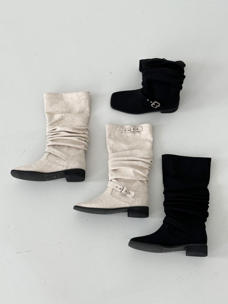 [당일출고🚚특가세일!] 린넨 투버클 주름 셔링 통넓은 하프 스퀘어코 미들부츠 롱부츠