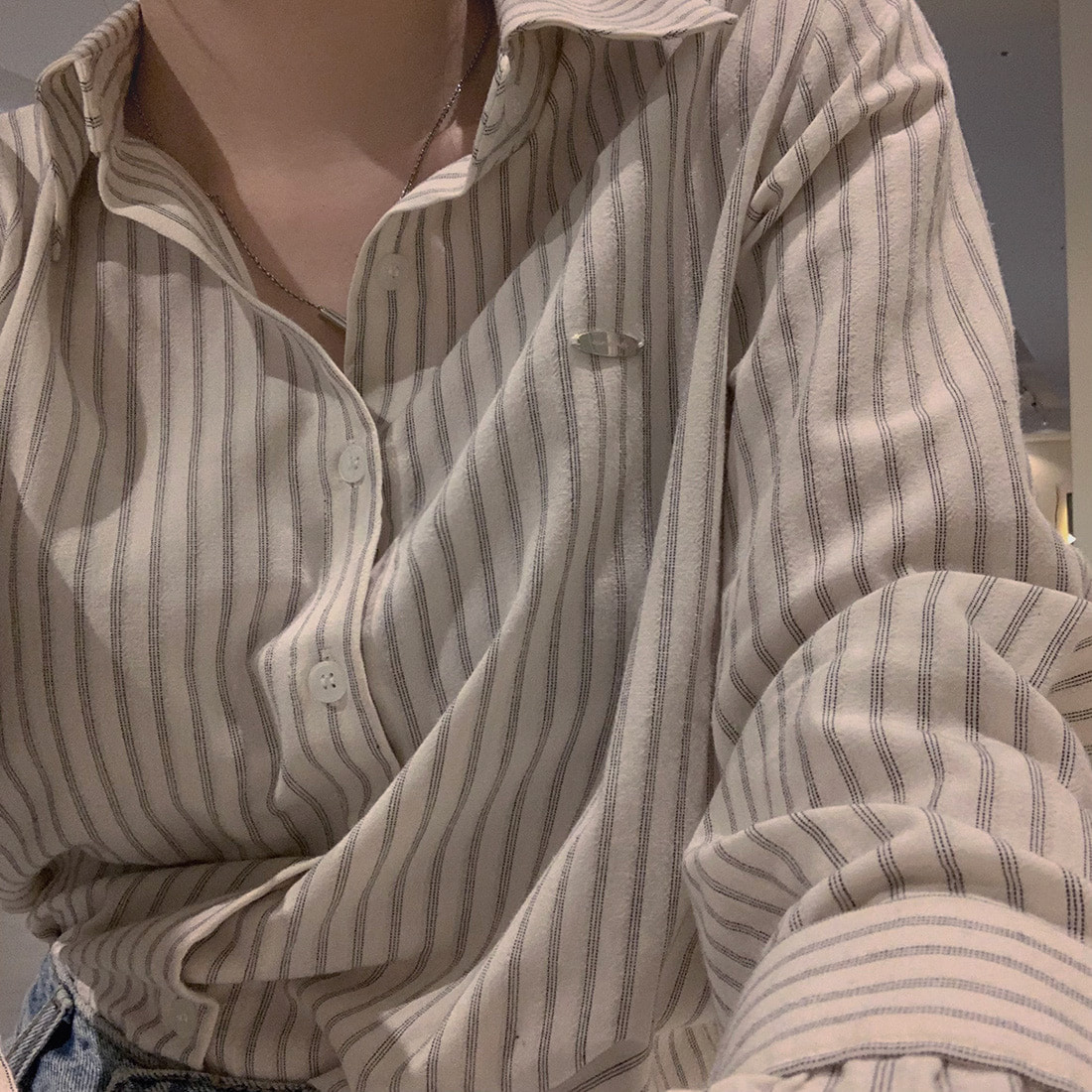 [3천장돌파✨/추천] 자체제작 #크치Made 체스넛 클래식 스트라이프 긴팔 셔츠 블라우스 - nb (하객룩,레이어드,만능템!)