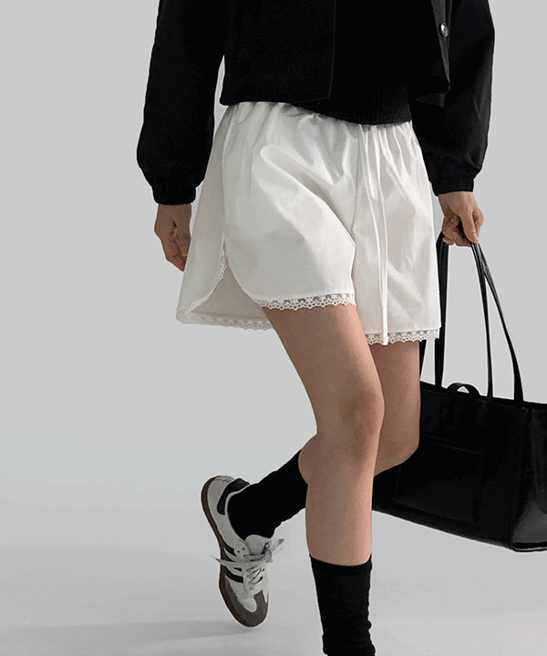 스위트 밴딩 레이스 코튼 반바지