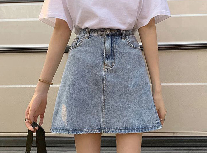 @휘뚜루마뚜루 데일리템@ 리트릿데님스커트 미니스커트 청스커트 롱레그라인 하이웨스트 심플디자인 베이직 코튼 꾸안꾸 새학기 신상