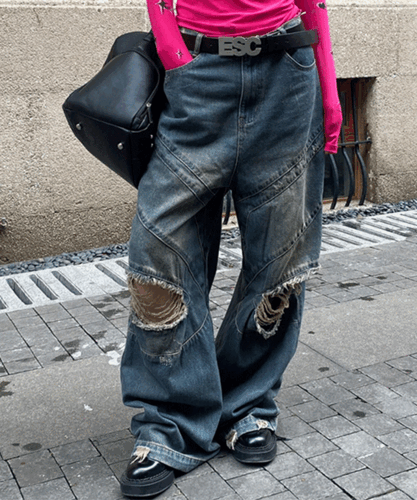 데님 와이드 컷팅 롱팬츠 해리(1color)