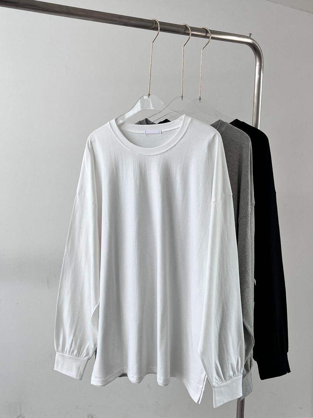 완전박시핏 라운드 소매시보리 어페럴 면 긴팔티 3컬러