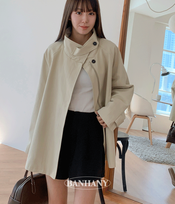 호렌❤️하이넥 카라 하프 투웨이 지퍼 트렌치코트 자켓 3color