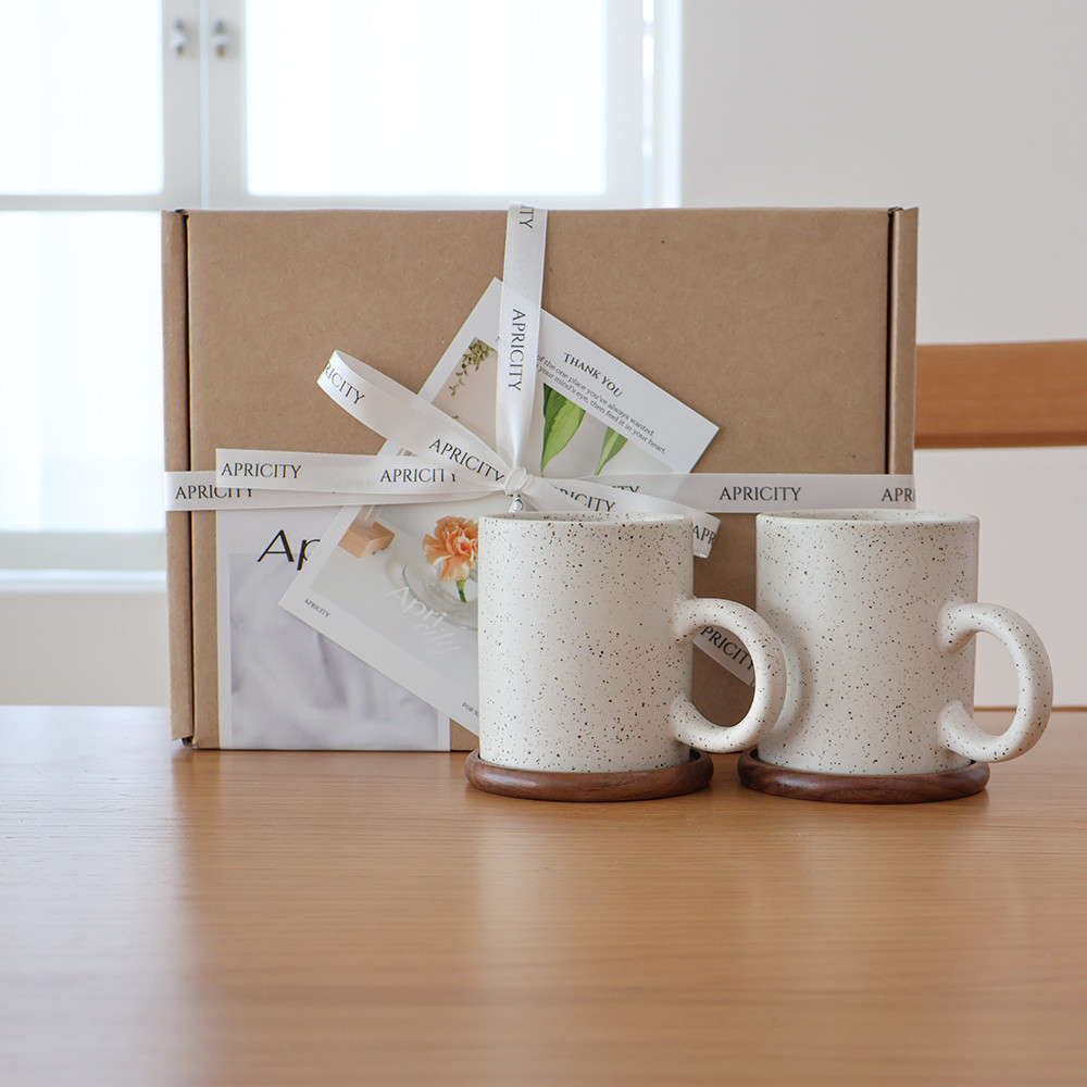 (당일출고) 쿠앤크 점박이링 머그컵 2인 선물세트 (원목컵받침 선물포장 포함) 집들이 선물 추천템
