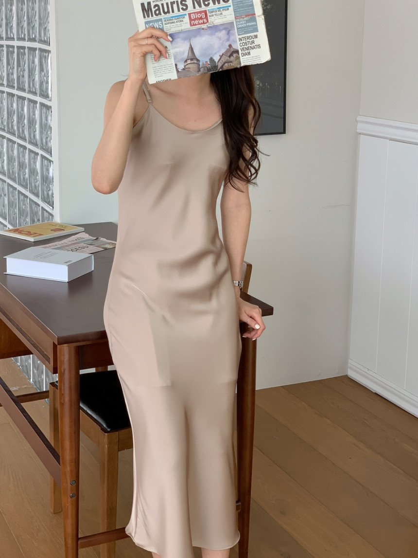 [소재good/레이어드ops] 끈조절 새틴 실크 머메이드 브이넥 나시 뷔스티에 레이어드 원피스