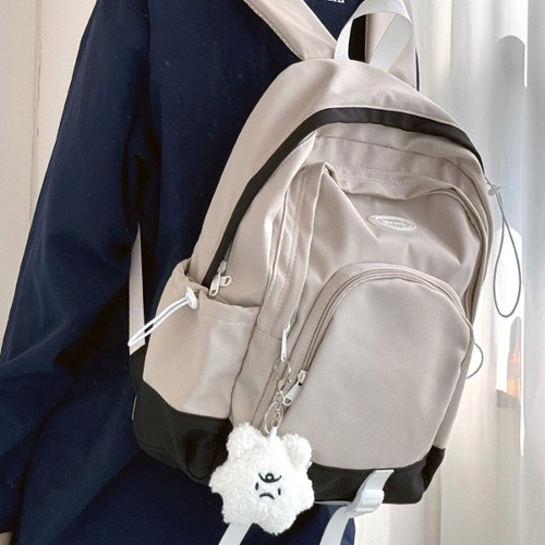 옵시디언 나일론 백팩 대학생 책가방 빈티지 캐주얼 캔버스 포켓 버클 지퍼 무지 가방 인형 키링 장식 세트 배낭 데일리 천가방 스쿨백