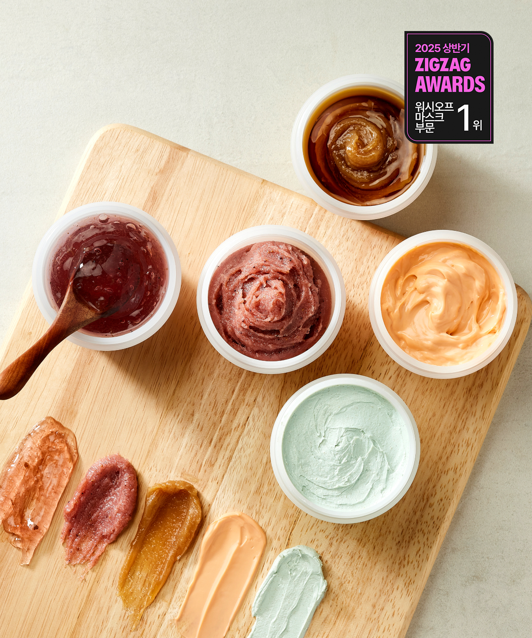 화장품법에 따라 기재, 표시하여야 하는 모든 성분[라벤더푸드마스크] 정제수, 글리세린, 부틸렌글라이콜, 판테놀, 1,2-헥산다이올, 라벤더꽃수(5,250 ppm), C12-14알케스-12, 트로메타민, 카보머, 라벤더꽃(3,000 ppm), 락토바실러스/히비스커스꽃발효여과물, 에틸헥실글리세린, 쇠비름추출물, 암모늄아크릴로일다이메틸타우레이트/브이피코폴리머, 글리세릴아크릴레이트/아크릴릭애씨드코폴리머, 소듐하이알루로네이트, 소듐파이테이트, 딜추출물, 적색227호, 청색1호, 향료 [딸기슈가푸드마스크] 수크로오스(36 %), 글리세린, 카프릴릭/카프릭트라이글리세라이드, 세테스-10, 마카다미아씨오일, 칸데릴라왁스, 세틸에틸헥사노에이트, C12-14알케스-12, 스테아랄코늄헥토라이트, 메도우폼씨오일, 야생딸기씨(10,000 ppm), 정제수, 라놀린, 솔비탄라우레이트, 시어버터, 1,2-헥산다이올, 에틸헥실글리세린, 카라멜, 부틸렌글라이콜, 락토바실러스/히비스커스꽃발효여과물, 야생딸기추출물(100 ppm), 토마토추출물, 스페인감초뿌리추출물, 당근추출물, 녹차추출물, 병풀추출물, 딜추출물, 살리실릭애씨드, 적색227호, 향료 [살구푸드마스크] 정제수, 글리세린, 카올린, 에틸헥실팔미테이트, 실리카, 글리세릴스테아레이트, 세테아릴알코올, 칼라민, 폴리글리세릴-3메틸글루코오스다이스테아레이트, 하이드록시에틸아크릴레이트/소듐아크릴로일다이메틸타우레이트코폴리머, 1,2-헥산다이올, C12-14알케스-12, 폴리비닐알코올, 에틸헥실글리세린, 팔미틱애씨드, 스테아릭애씨드, 잔탄검, 락토바실러스/히비스커스꽃발효여과물, 살구추출물(525 ppm), 시트릭애씨드, 솔비탄아이소스테아레이트, 부틸렌글라이콜, 암모늄아크릴로일다이메틸타우레이트/브이피코폴리머, 딜추출물, 카프릴릴글라이콜, 황색5호, 향료 [포테이토푸드마스크] 정제수, 셀룰로오스, 글리세린, 카프릴릭/카프릭트라이글리세라이드, 세테아릴알코올, 하이드록시에틸아크릴레이트/소듐아크릴로일다이메틸타우레이트코폴리머, 글라이콜다이스테아레이트, 1,2-헥산다이올, 하이드록시아세토페논, 부틸렌글라이콜, 카보머, 트로메타민, 락토바실러스/히비스커스꽃발효여과물, 세테아릴글루코사이드, 하이드록시에틸셀룰로오스, 에틸헥실글리세린, 감자추출물(400 ppm, 클로로겐산 200 ppb), 카라멜, 솔비탄아이소스테아레이트, 소듐하이알루로네이트, 병풀추출물, 하이드로제네이티드레시틴, 폴리글리세릴-10라우레이트, 딜추출물, 다이프로필렌글라이콜, 카페인, 글루코오스, 마데카소사이드(13,000 ppb), 아시아티코사이드, 마데카식애씨드, 아시아틱애씨드, 향료 [페어민트푸드마스크] 정제수, 카올린, 타피오카전분, 글리세린, 부틸렌글라이콜, 벤토나이트, 팔미틱애씨드, 스테아릭애씨드, 미리스틱애씨드, 라우릭애씨드, 글리세릴스테아레이트, 포타슘하이드록사이드, 쌀가루, 서양배추출물(10,000 ppm), 1,2-헥산다이올, C12-14알케스-12, 호두나무열매껍질가루, 하이드록시프로필메틸셀룰로오스, 쇠비름추출물, 락토바실러스/히비스커스꽃발효여과물, 에틸헥실글리세린, 페퍼민트잎추출물(100 ppm), 스피어민트잎추출물(100 ppm), 폴스애플민트잎추출물(100 ppm), 밀싹추출물, 딜추출물, 브로콜리추출물, 양배추추출물, 셀러리추출물, 케일잎추출물, 카프릴릴글라이콜, 청색1호, 향료 [샤인머스캣시카바하푸드마스크] 정제수, 글리세린, 마이카, 부틸렌글라이콜, 타피오카전분, 벤토나이트, 프로판다이올, 글리세릴글루코사이드, 베타인, 1,2-헥산다이올, 쌀가루, 다이프로필렌글라이콜, 하이드록시아세토페논, 소듐아크릴레이트/소듐아크릴로일다이메틸타우레이트코폴리머, 콘민트가루, 크로뮴하이드록사이드그린, 피피지-13-데실테트라데세스-24, 폴리아이소부텐, 병풀추출물 (2,060 ppm), 살리실릭애씨드 (2,000 ppm), 잔탄검, 트로메타민, 판테놀, 포도추출물 (1,030 ppm), 락토바실러스/히비스커스꽃발효여과물, 황색산화철, 유칼립투스잎추출물, 로즈마리잎오일, 에틸헥실글리세린, 4-터피네올, 글루코오스, 솔비탄올리에이트, 카프릴릴/카프릴글루코사이드, 멕시칸주니퍼오일, 메틸다이아이소프로필프로피온아마이드, 시트릭애씨드, 소듐파이테이트, 라반딘오일, 알로에베라잎추출물, 약모밀추출물, 레몬그라스추출물, 콘민트추출물, 센티드제라늄꽃/잎/줄기추출물, 갈바눔수지오일, 에리스리톨, 비터오렌지꽃추출물, 딜추출물, 구기자추출물, 육두구추출물 [레몬딜버터푸드마스크] 정제수, 글리세린, 메틸프로판다이올, 벤토나이트, 카올린, 마그네슘알루미늄실리케이트, 세테아릴올리베이트, 카프릴릭/카프릭트라이글리세라이드, 팔미틱애씨드, 폴리비닐알코올, 1,2-헥산다이올, 스테아릭애씨드, 솔비탄올리베이트, 세테아릴알코올, 글리세릴스테아레이트, 세틸알코올, 호두나무열매껍질가루, 솔비탄스테아레이트, 에틸헥실글리세린, 서양자초잎가루(2,800 ppm), 레몬추출물(1,020 ppm), 시어버터(1,003 ppm), 나이아신아마이드, 다이소듐이디티에이, 잔탄검, 알란토인, 락토바실러스/히비스커스꽃발효여과물, 부틸렌글라이콜, 하이드로제네이티드레시틴, 딜추출물(5,000 ppb), 망고씨버터(3,000 ppb), 카