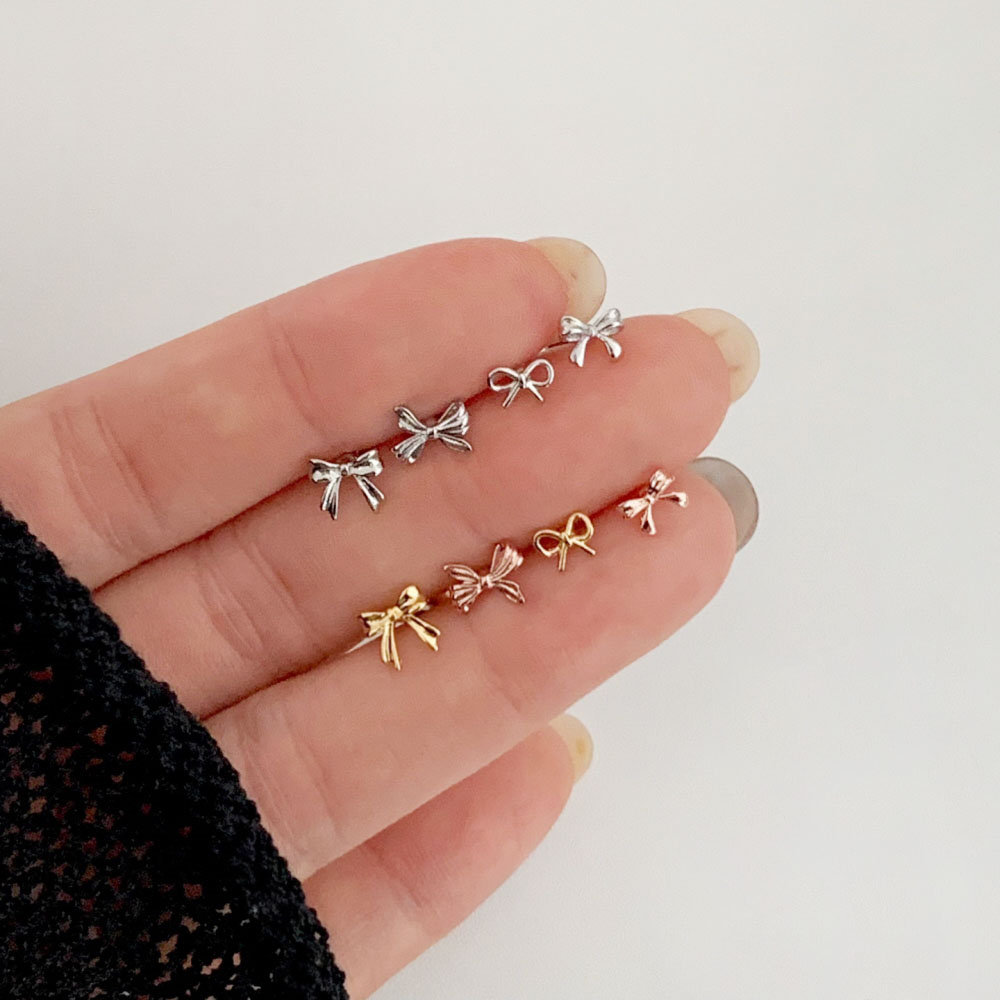 [당일출고/12type] 쁘띠 미니 리본 심플 데일리 실버 골드 로즈골드 레이어드 피어싱 써지컬 시리즈