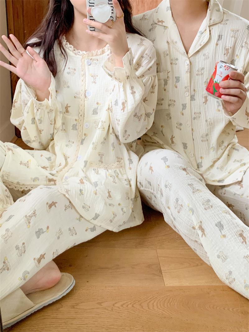 (커플잠옷)(슈린잠옷세트) 요루면 신혼 연인 긴팔 바지 투피스 봄 파자마 홈웨어