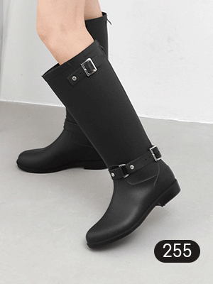 버클 스트랩 백지퍼 롱 레인부츠(2.7cm) 11514