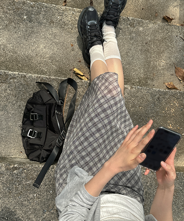 [무료배송] 미치코 리본 체크 미디 스커트