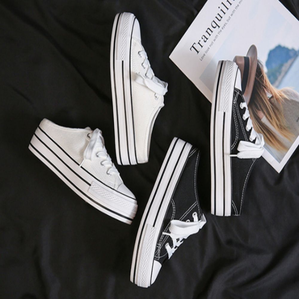 운동화 여자운동화 면신발 캔버스화 여성 키높이 캔버스화 블로퍼 뮬 단화 하이탑스니커즈 여성운동화