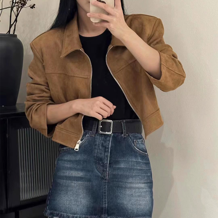 (당일출고) 브이넥 카라 루즈핏 데일리 숏 보이시 보이쉬 캐주얼 스웨이드 크롭 간절기 집업 아우터 자켓 3color