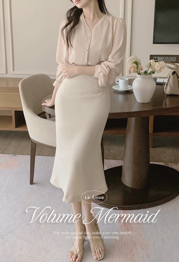 [🎁라스트할인40%][🤍하객룩/치마][MADE] 볼륨 머메이드 롱 스커트