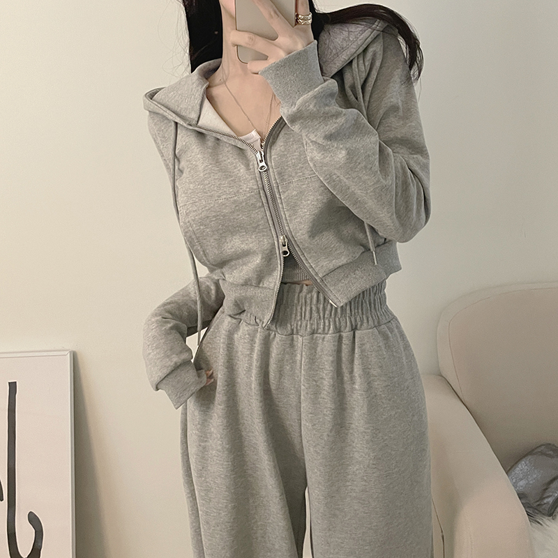 [꾸안꾸*-*/비율깡패set] 스윗 투웨이 크롭 후드집업+와이드팬츠set 꾸안꾸 트레이닝 밴딩팬츠 휘뚤마뚤 데일리 베이직
