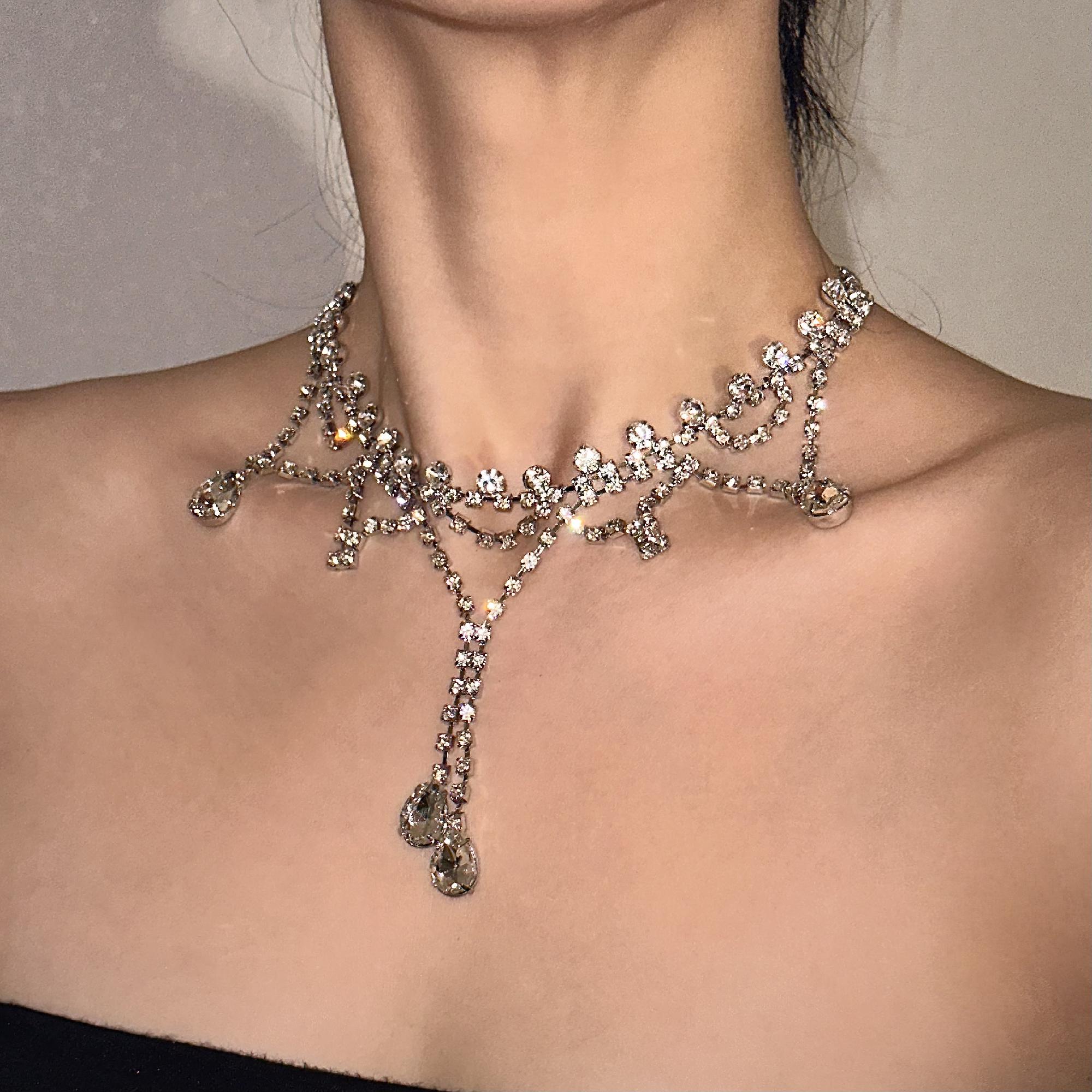 [당일배송/단독] 1055 로맨틱 에마블르 볼드 큐빅 드롭 화려한 목걸이