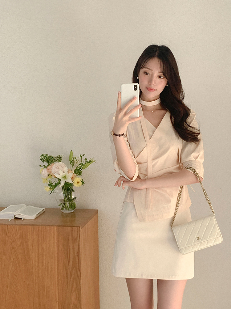 [당일발송/자체제작/하객룩] 디헤 브이넥 타이 블라우스