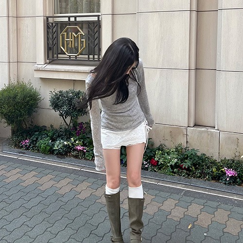 리본 펀칭 랩 치마 바지