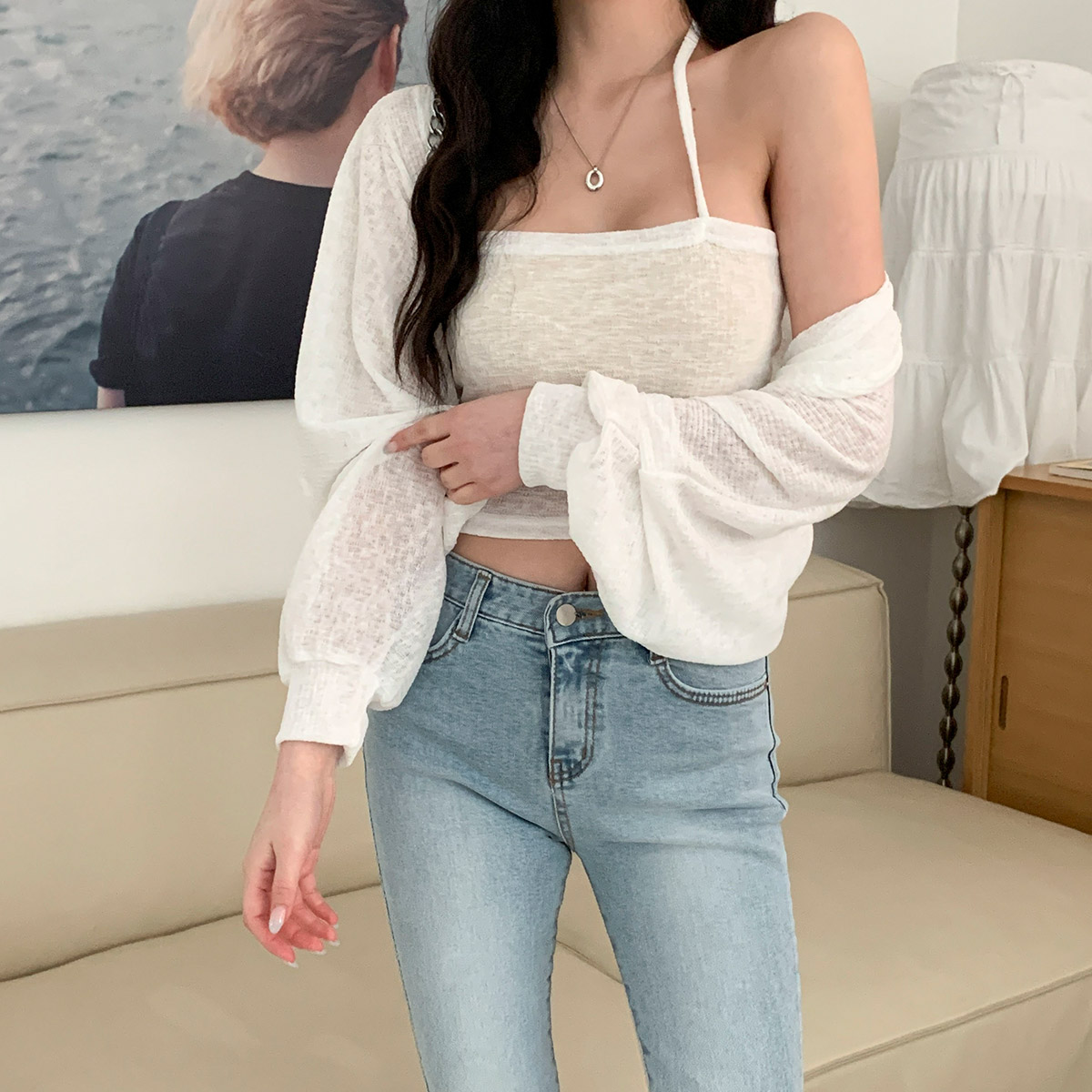 베피엔 롱슬리브 시스루 볼레로 홀터 나시 세트
