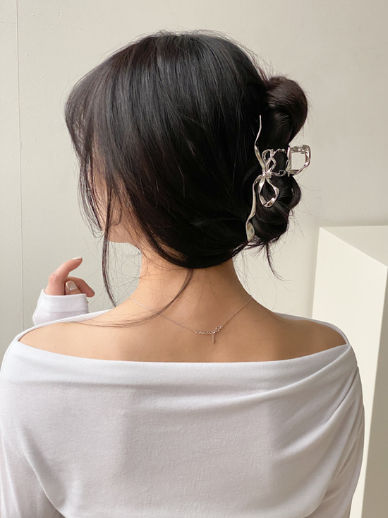 꼬불리본 메탈 빅사이즈 올림머리 헤어 집게핀 2color