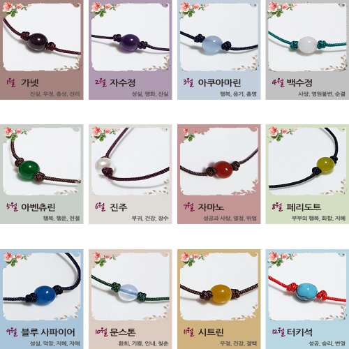 1줄 12월 원석 탄생석 매듭팔찌 생일선물 커플우정가족 소원 실 끈팔찌