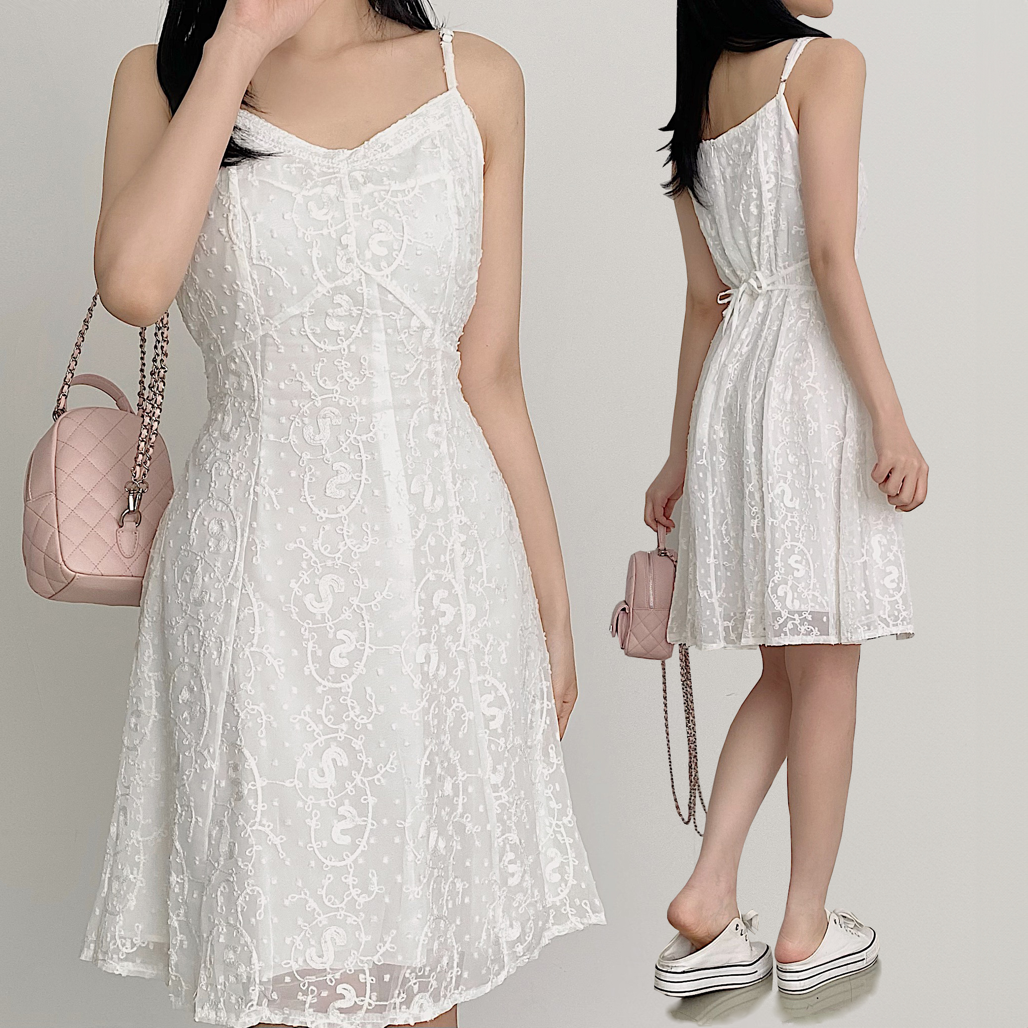 [끈조절가능] 펀칭원피스 펀칭레이스원피스 펀칭미니원피스 아일렛원피스 셀프웨딩원피스 휴양지원피스 빈티지원피스 자수원피스 펀칭 레이스 뷔스티에 미니 웨딩 원피스