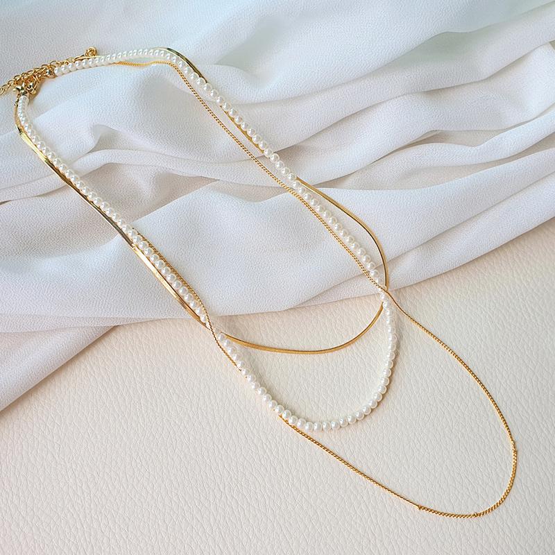 요즘유행하는목걸이 스네이크 뱀줄 진주 체인 레이어드 세트