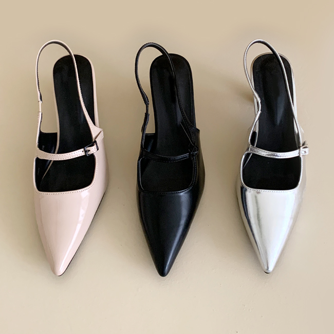 [단독] 유니 스틸레토 미들굽 메리제인 슬링백 (5cm)