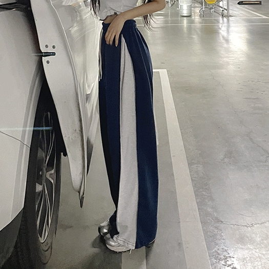*7color*[롱다리핏/핏보장] 싸인 사이드 핀턱 배색 와이드팬츠 트레이닝 봄팬츠 백포켓 힙 트렌디 꾸안꾸