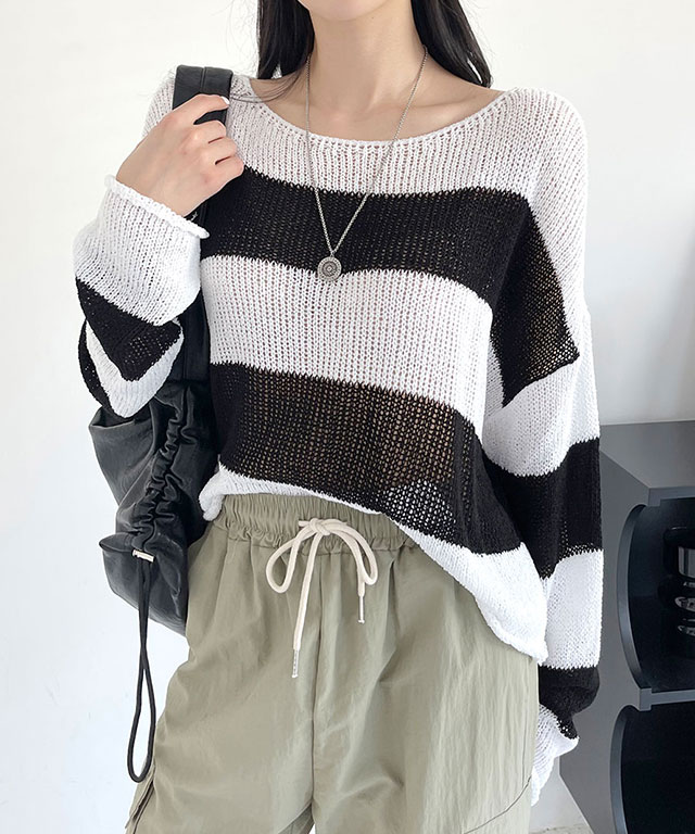 입술넥 단가라 오버핏 보트넥 부클 니트