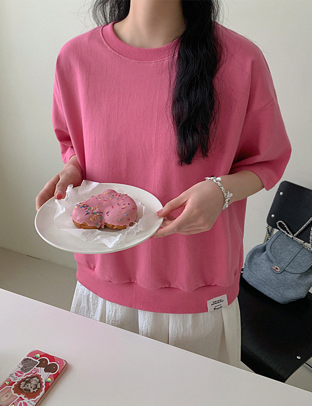슈헤이 루즈핏 반팔 크롭 맨투맨 74695