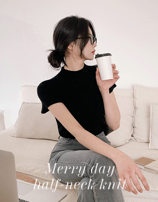 메리데이 하프넥 반팔니트(반목/반폴라/캡소매/이너티/오피스룩/데이트룩/데일리룩