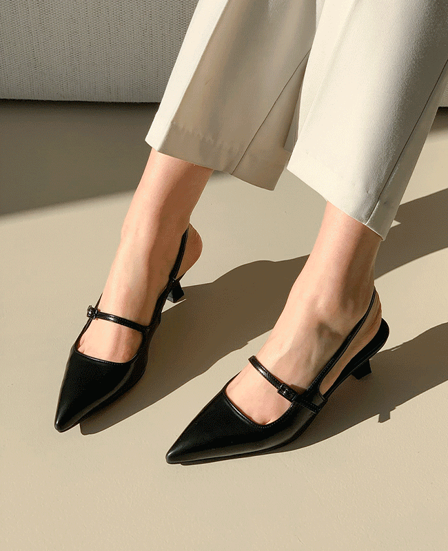 페이토 에나멜 스틸레토 슬링백 힐 5cm