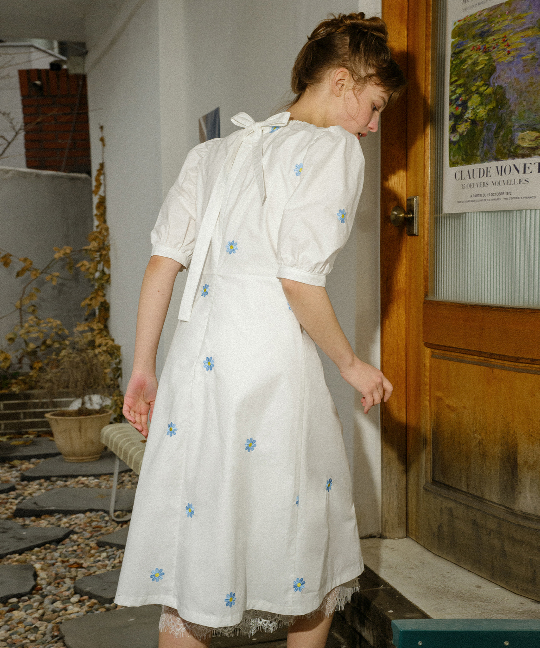 플라워 자수 셔링 드레스