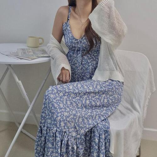 [2way] 리우 플라워 쉬폰 나시 롱원피스