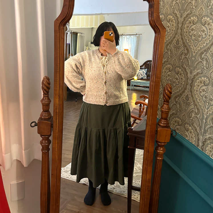 모리걸 빅사이즈 (55-88) A라인 면 빅사이즈 주름 치마 롱 밴딩 핀턱 스커트