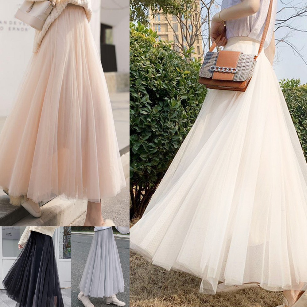 허리 밴딩 풍성한 샤 스커트 봄 여름 러블리 롱 치마 튜튜 프릴스커트