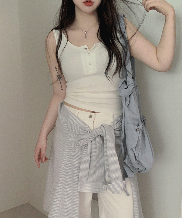 #12012 데일리 쫀쫀스판 골지 스냅 나시t : 3color