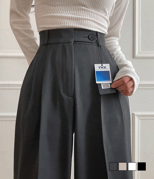 [무료배송] 출근룩, 하이웨스트 랩 버튼 투핀턱 와이드 롱 슬랙스