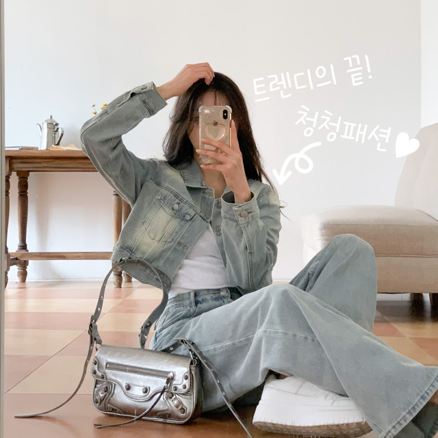 [자켓+청바지set] 코디끝!! 매년입는 기본템! 최저가 보장!! 데님크롭자켓+와이드팬츠 - 2color