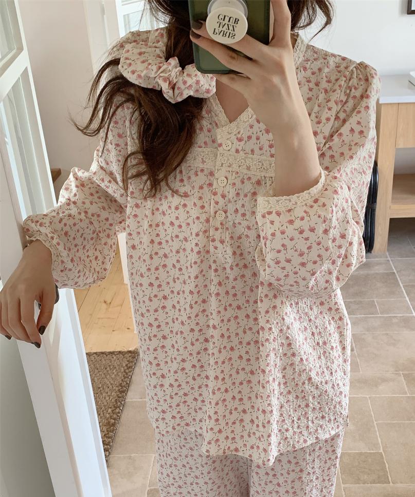 [직진🚀] 가든 긴팔 잠옷 원피스 파자마 시어서커 홈웨어 세트 2type