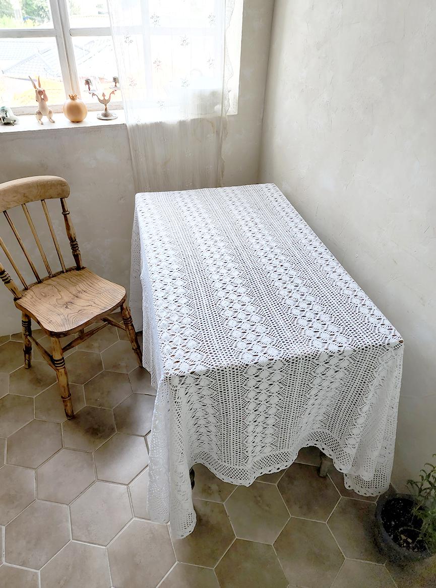 블랑쉬 화이트 스트라이프 플라워 모티브 블랭킷 뜨개 러너 다용도 러너140x220