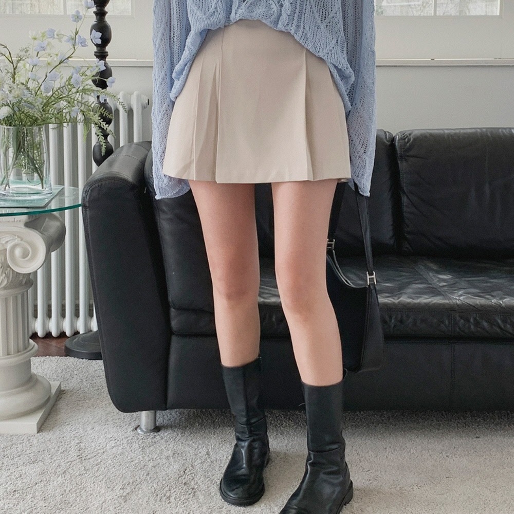 여자 봄 미니멀룩 사이드 플리츠 미니스커트