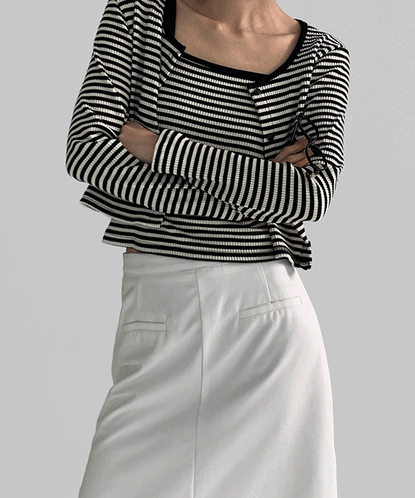 [무료배송] 유니 스트라이프 단가라 가디건 (나시 set)