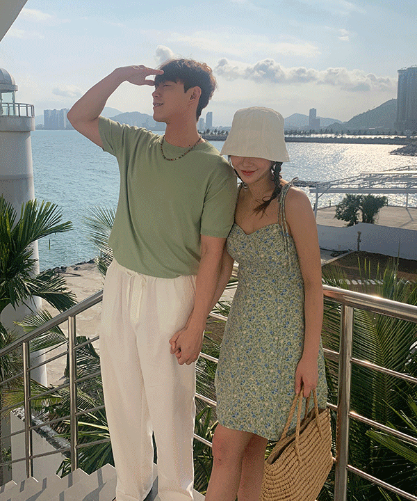 [바캉스룩/휴양지룩/신혼여행룩] 그랑그린 반팔니트 / 나시원피스 커플룩 시밀러룩