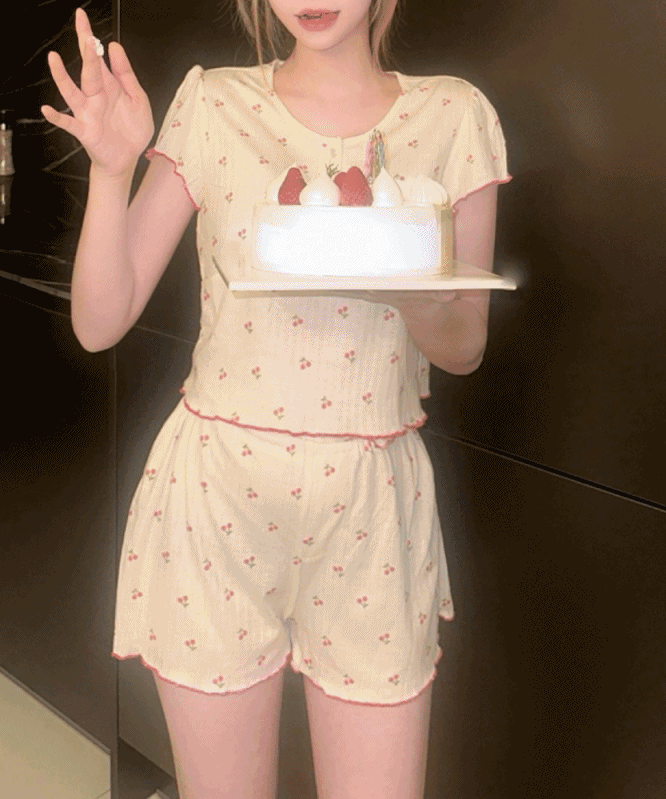 [봄신상][부들부들/셋업] 반팔 반바지 프릴 잠옷 세트