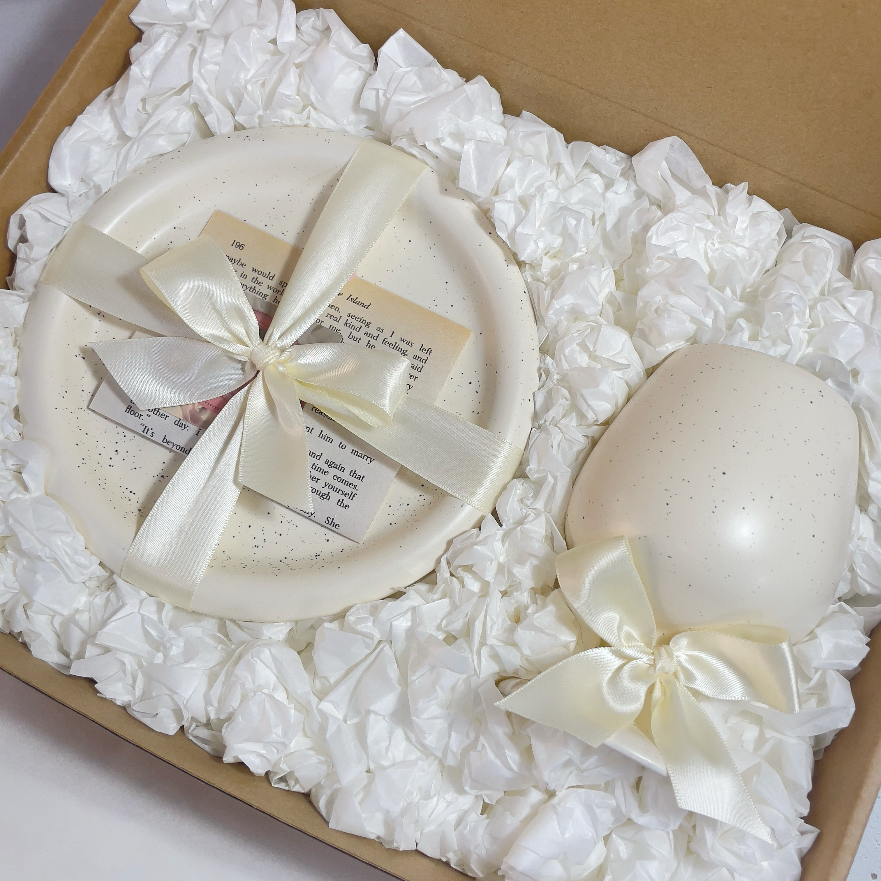 크림 도넛 접시+도자기 와인잔 선물세트 집들이선물 신혼부부 홈카페